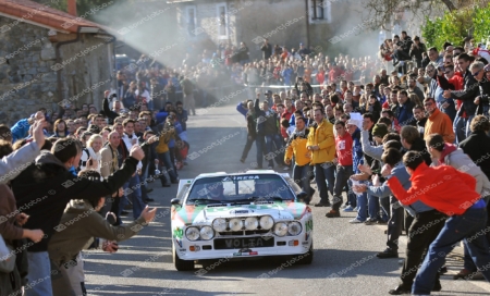 Giuseppe Volta, con su precioso Lancia 037, pasando por el pueblo de Castillo Pedroso durante la segunda etapa del Rallye Legend Rutas Cántabras 2009.