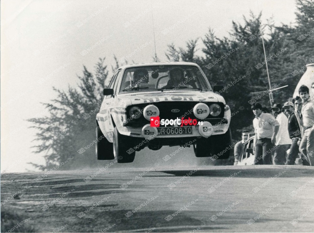 Fotografía de José Antonio Rodríguez «Peitos» y Salgueiro, sobre su Ford Escort MK-II en el Alto del Puerto de la Herrera, durante el Rallye Criterium Rioja del año 1982, prueba puntuable para el Campeonato de España de Rallyes.